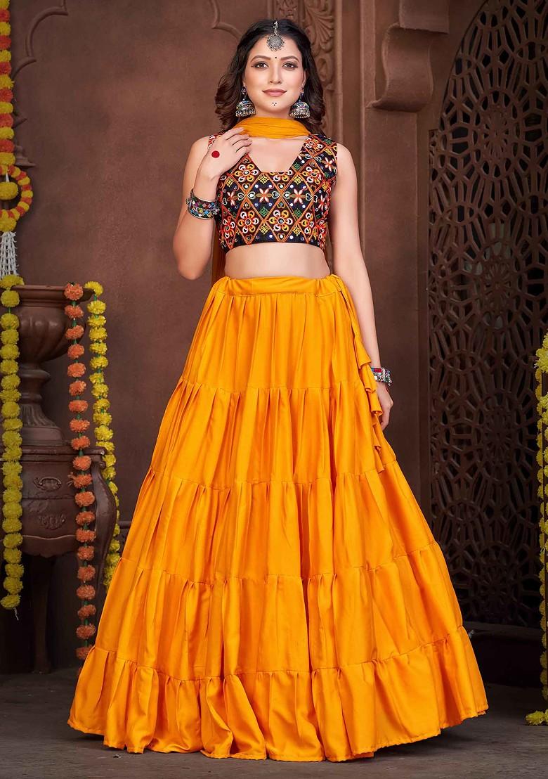 Lehenga: the pre-wedding attire. Likewise, the fabric must be light and simply embroidered or embellished so that it does not inhibit easy movement yet looks stylish and relaxed whether you accessorize it with a plain blouse and some flowers on the side. Voila! Your beautiful lehenga would have been breezy enough to pay homage to comfort and tradition during the haldi ceremony.
