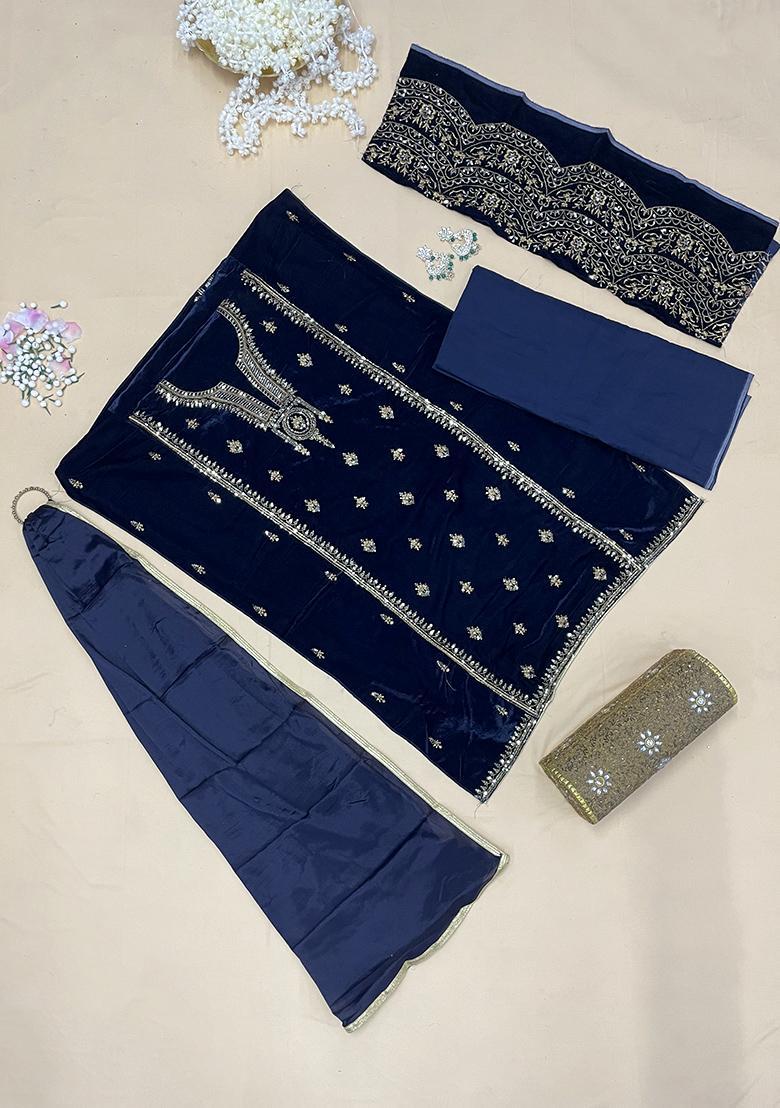 Make your wardrobe richer with this Blue Embroidered Velvet Kurta Set, a celebration of artistry and elegance. Whether it's a personal treat or a thoughtful gift, this outfit is sure to turn heads and leave a lasting impression wherever you go.