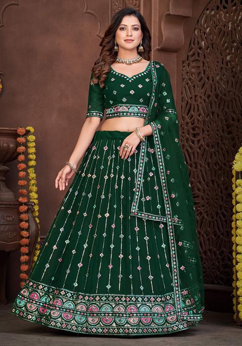 Dark Green Embroidered Georgette Lehenga Set - XLH02150