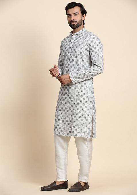 Elevate Your Ethnic Wardrobe With This Stunning Chikankari Cotton In A Timeless Grey Shade. Crafted To Perfection By Rawayi, This Kurta For Men Is A Graceful Blend Of Tradition And Modern Design Sensibilities. The Soft And Translucent Texture Of Cotton