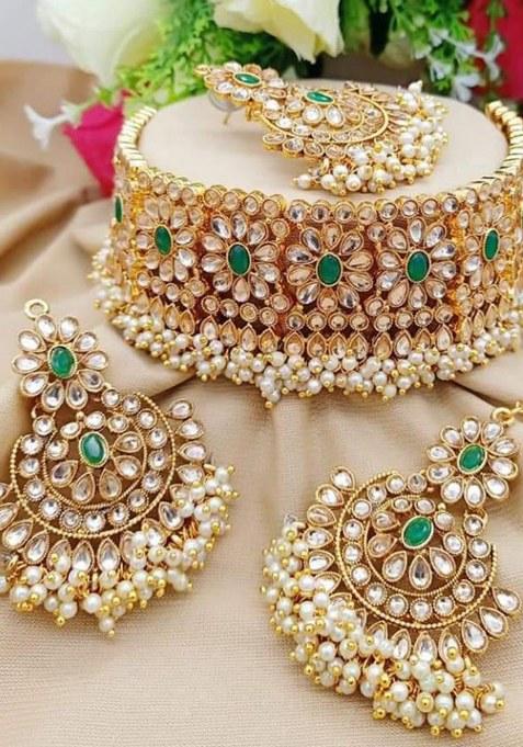 Traditional Gold Plated Kundan Green Choker Bridal Necklace