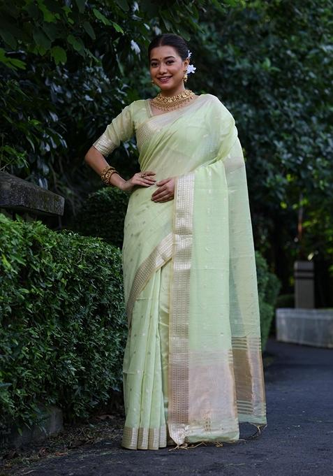 The blouse worn by the model is for styling only. Actual blouse fabric will be as per the saree design but might differ from the campaign image