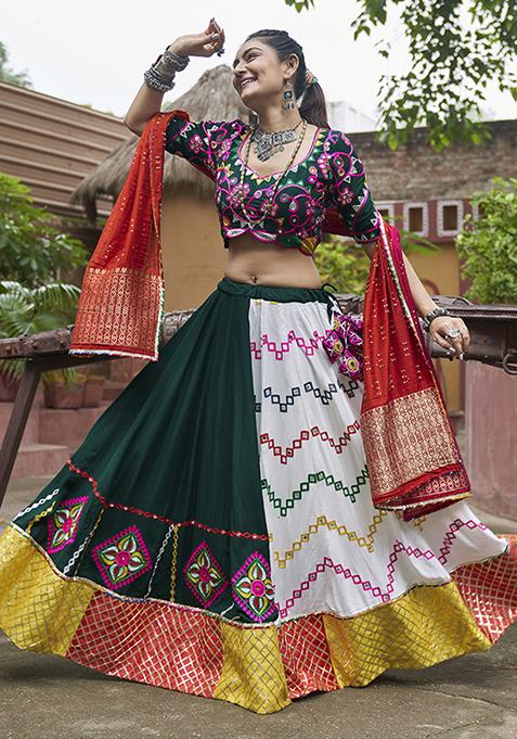 Step into elegance with this stunning Multicolour Thread Embroidered Viscose Rayon Lehenga Set, designed to turn heads at every celebration. A beautiful blend of tradition and trend, it's your perfect pick for any grand event.