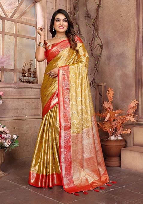 The blouse worn by the model is for styling only. Actual blouse fabric will be as per the saree design but might differ from the campaign image