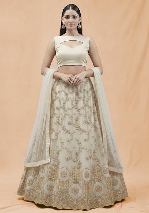 Soft Ivory Floral Print Tissue Pre Draped Saree Set