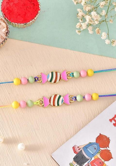 Set Of 2 Rakhi Gift Set With Fridge Magnet And Roli Tilak