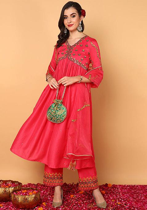 Pink Zari Sequin Embroidered Russian Silk Anarkali Set