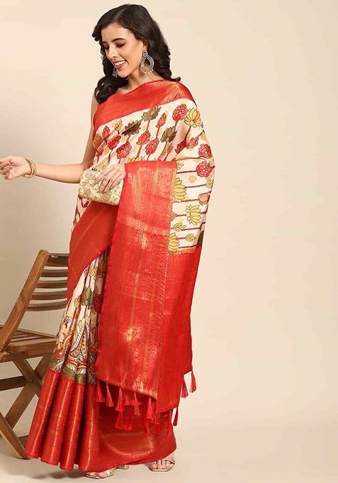 Off White Zari Weaving Work Kanjivaram Silk Saree Set