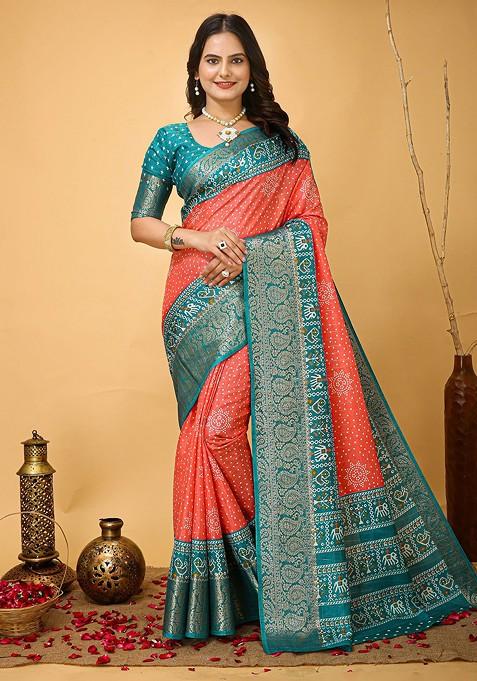 Orange Rajputana Kanjiviram Silk Saree Set
