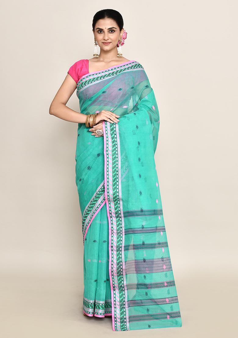 Green Motif Silk Saree Set