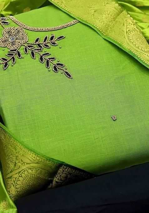 Green Zari Sequin Embroidered Velvet Kurta Set