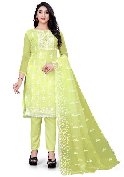 Light Green Embroidered Pure Net Anarkali Kurta Set