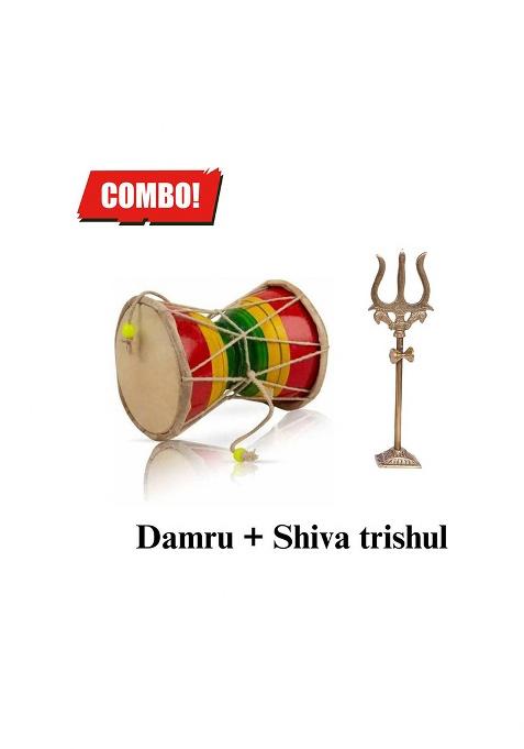 Daridra Bhanjan Damru Shiva Bhole Nath Natraja Tandava Hindu God Damaru Trishul For Puja Decorative Showpiece - 10 Cm(Wood Brass Multicolor)