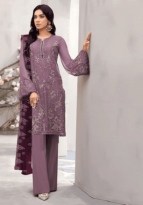 Dark Grey Embroidered Faux Georgette Kurta Set