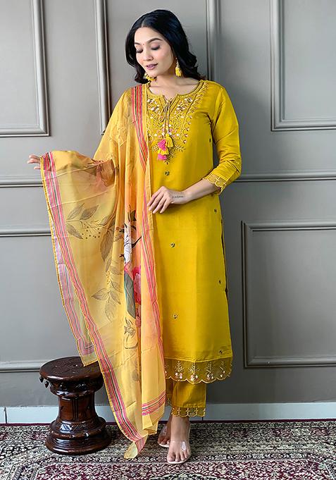 Mustard Yellow Embroidered Silk Salwar Kameez